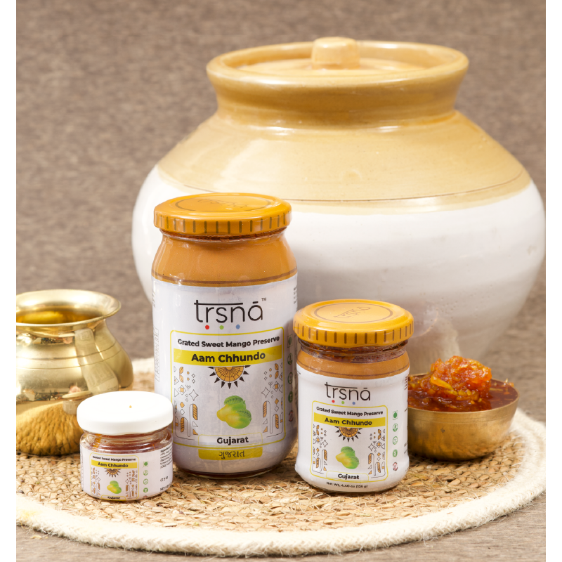 “A sun-kissed Gujarati treasure where raw mango meets golden indulgence.” Description Trsna’s Aam Chhundo is a golden tribute to Gujarat’s sun-drenched summers. Our Aam Chhundo is crafted at the height of mango season in small, artisanal batches at its Gujarat origin using only locally harvested, peak-fresh mangoes and a time-honoured heirloom recipe passed down through…