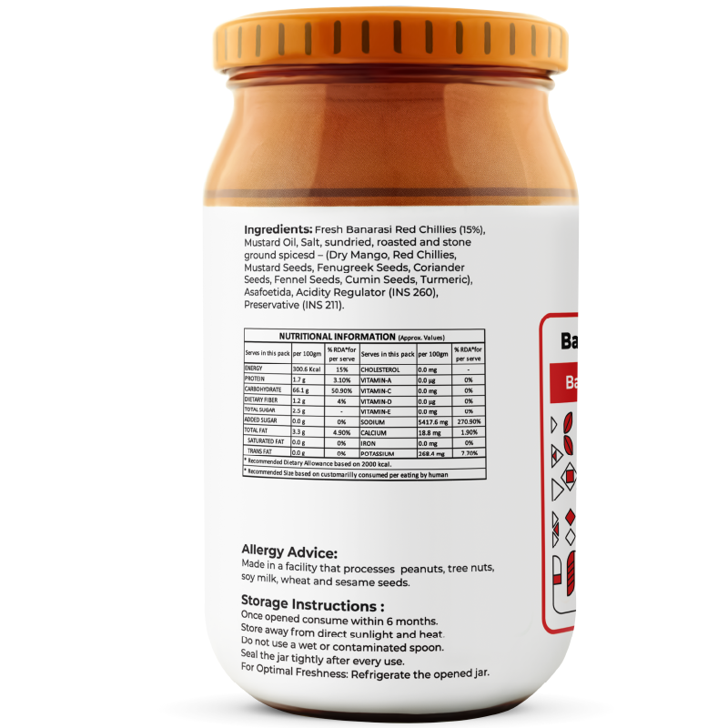 Our Banarasi Laal Mirch ka Achaar is handcrafted in season at its native Uttar Pradesh source, in small artisan batches using only locally harvested, peak-fresh ingredients and a traditional heirloom recipe passed through generations. We never substitute a single component—including our original mustard oil—so every jar captures the true, uncompromised taste of Banarasi red chilli pickle. No shortcuts. No compromises. Just pure, bold tradition in every bite.