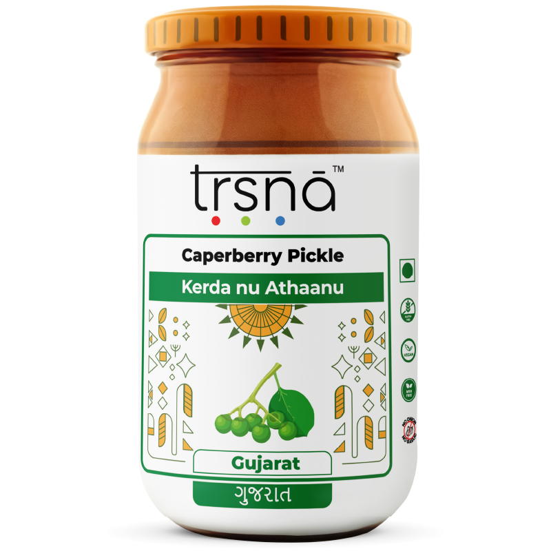 Transport your taste buds to Gujarat’s sun-baked plains with Trsna’s Caperberry Pickle—where desert bounty, time-honoured tradition, and uncompromising quality unite in every jar. Embrace the tang, savour the spice, and discover why our achaar stands in a league of its own!