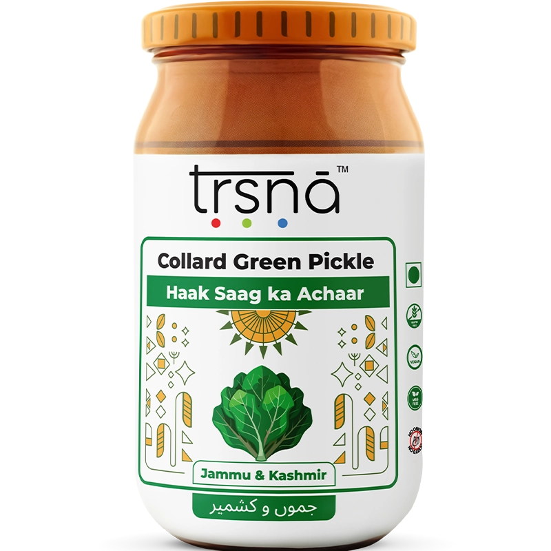 Our Haak Saag ka Achaar is handcrafted at the peak of collard green season in small, artisanal batches right in Jammu & Kashmir, using only locally grown greens and heirloom recipes passed down through generations. At Trsna, we shun gimmicks and refuse any substitutions—including our original mustard oil—so every jar delivers uncompromised authenticity and the true taste of Himalayan tradition. Each jar is slow-cooked, stone-ground, and steeped in authenticity. No shortcuts. No compromises. Just pure, leafy brilliance in every spoonful.