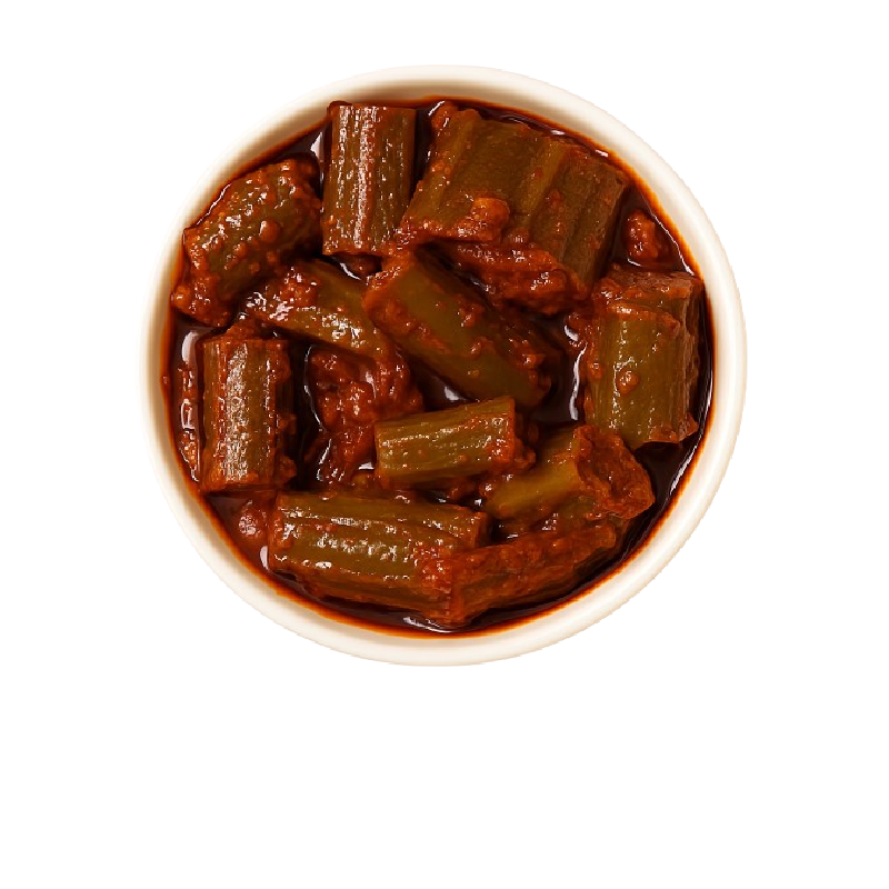 This pickle has its roots in rural Andhra kitchens, where drumsticks from backyard trees were preserved during peak harvest. Traditionally made by sun-drying and slow-cooking with tamarind and spices, it was a way to extend the life of this nutrient-rich vegetable through the monsoon.