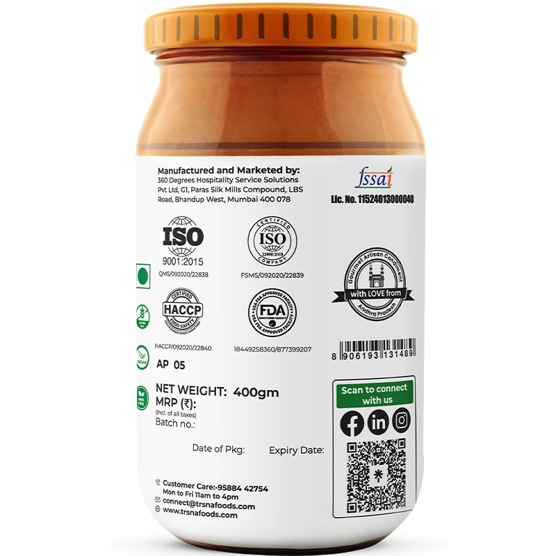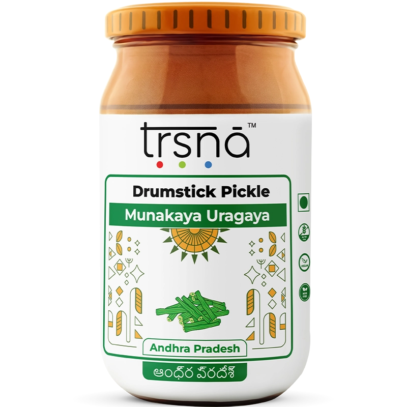 Our Munakaya Uragaya is handcrafted at the peak of drumstick season in small, artisanal batches in the heart of Andhra Pradesh, We use locally harvested, farm-fresh ingredients and honour a traditional heirloom recipe passed down through generations. We never substitute a single component—including our original sesame oil—so every jar captures the true, uncompromised taste of Trsna’s Drumstick Pickle.