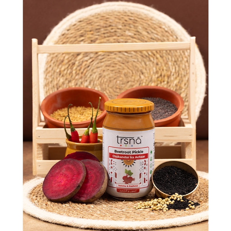 Trsna’s Drumstick Pickle is made with 55% freshly cut drumstick pieces, harvested in season and marinated in sesame oil. Infused with tamarind, lime juice, garlic, and a traditional blend of sun-dried, roasted, and stone-ground spices, it follows an heirloom recipe passed down through generations. Produced at source in small batches, it preserves the earthy character of drumsticks with tangy complexity and bold southern flair. No ingredient substitutions—just pure tradition.