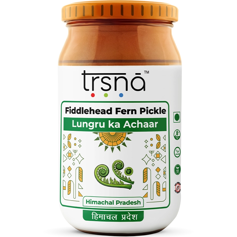 Elevate your table with Trsna’s Fiddlehead Fern Pickle—where seasonal foraged freshness, Himalayan heritage, and uncompromising quality unite in every bite. Taste the wild essence of the mountains and discover why our achaar stands in a class of its own.