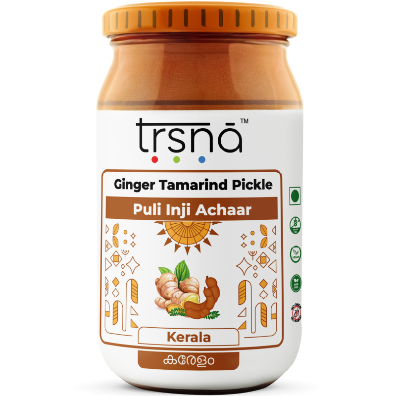 Our Puli Inji Achaar is handcrafted during Kerala’s peak tamarind and ginger season in small, artisanal batches at source. We use only locally harvested, backwater-fresh ingredients and honor a traditional heirloom recipe passed down through generations. At Trsna, we reject gimmicks and never substitute a single element—including our original gingelly oil—so every jar captures uncompromised authenticity. Each jar is sun-cured, stone-ground, and steeped in authenticity. No shortcuts. No compromises. Just pure, sweet-sour brilliance in every spoonful.
