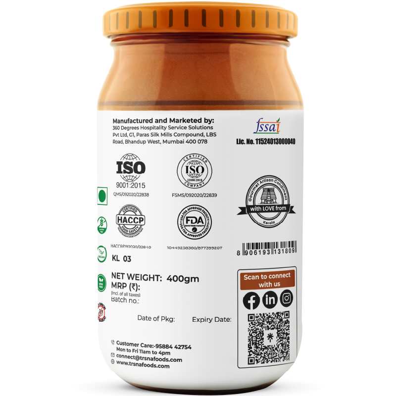 Each jar is handcrafted at source in Kerala by local artisans who preserve the recipe’s integrity through generational techniques and regionally sourced ingredients. It channels coastal wisdom and festive grandeur.