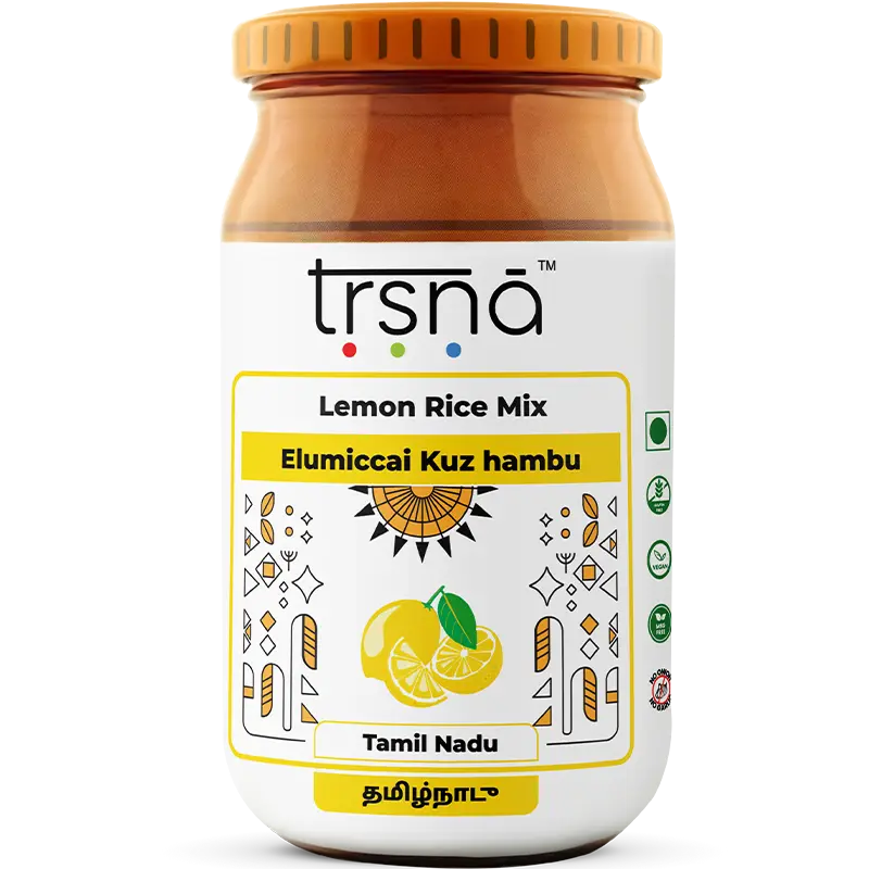 Brighten every meal with Trsna’s Lemon Rice Mix—where Tamil Nadu’s seasonal bounty, time-honoured tradition, and meticulous craftsmanship unite in one unforgettable jar. Taste the sunlit zest and make every bowl extraordinary!