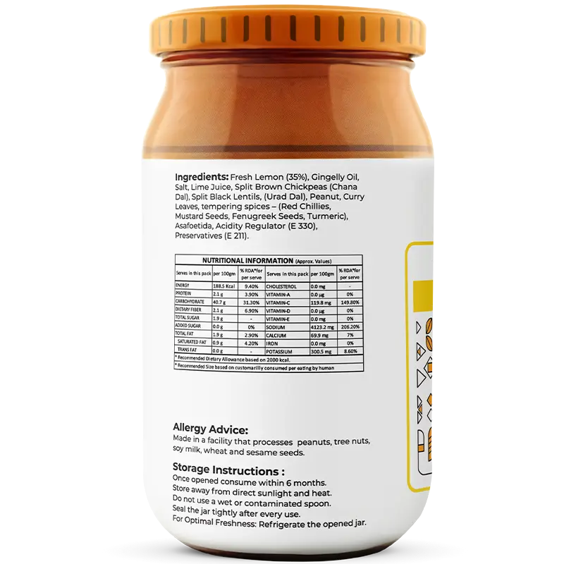 Each jar is handcrafted at source in Tamil Nadu, using locally grown lemons and spices. Artisans follow heirloom recipes with zero compromise, staying true to regional flavor systems.