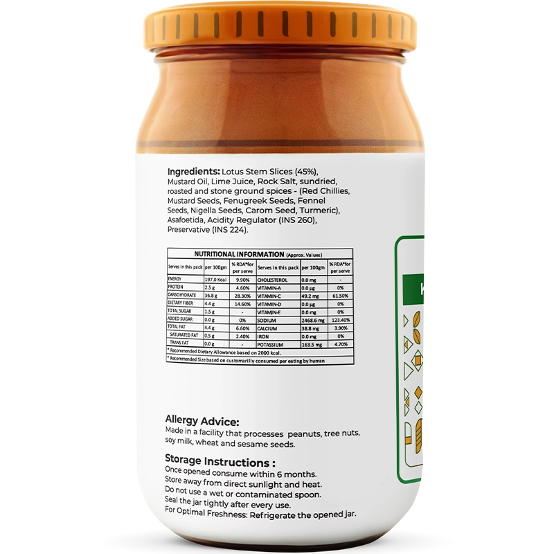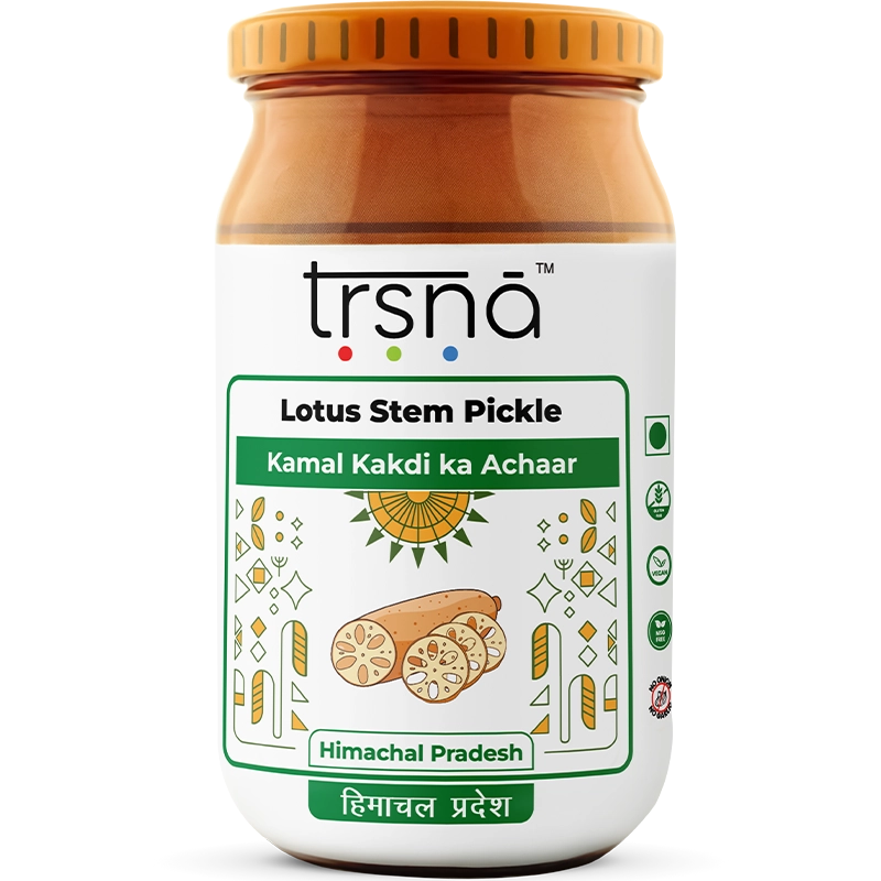 Our Kamal Kakdi ka Achaar is handcrafted at the peak of lotus stem season in small, artisanal batches right in Himachal Pradesh. We use only locally sourced, mountain-fresh ingredients and honour a centuries-old heirloom recipe passed down through generations. At Trsna, we never cut corners or substitute a single element—including our original mustard oil—so every jar delivers the true, uncompromised taste of tradition in every spoonful.